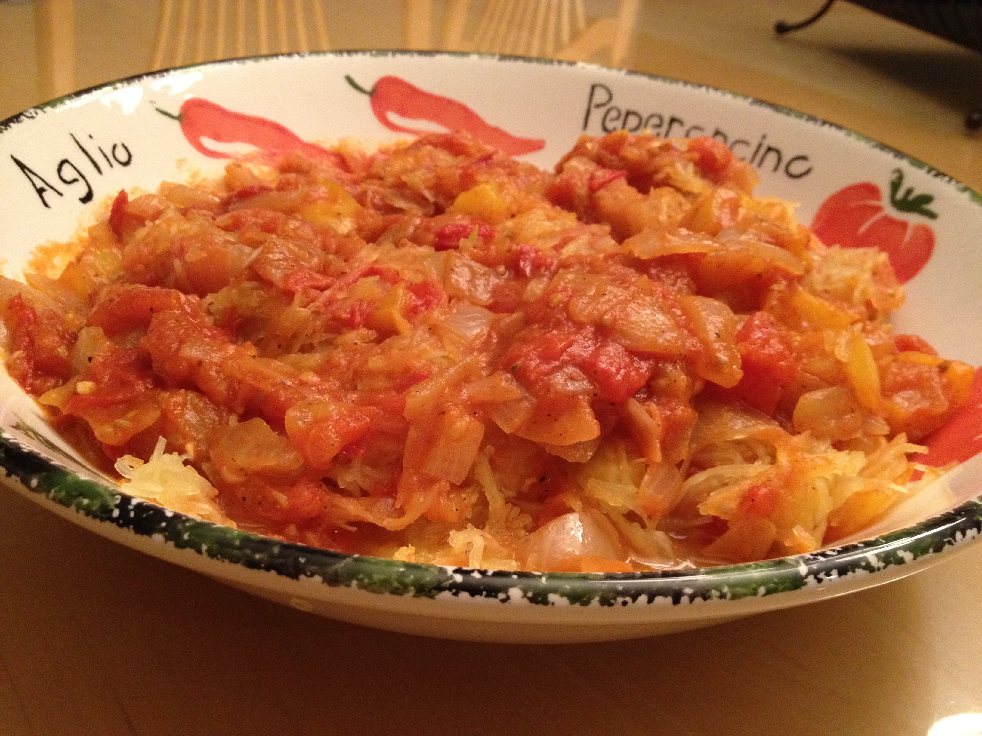 3. Add another splash of olive oil and some salt and pepper to taste. Put on top of spaghetti squash, pasta, or pizza and mangia! (I put mine on spaghetti squash; see how to cook it here)