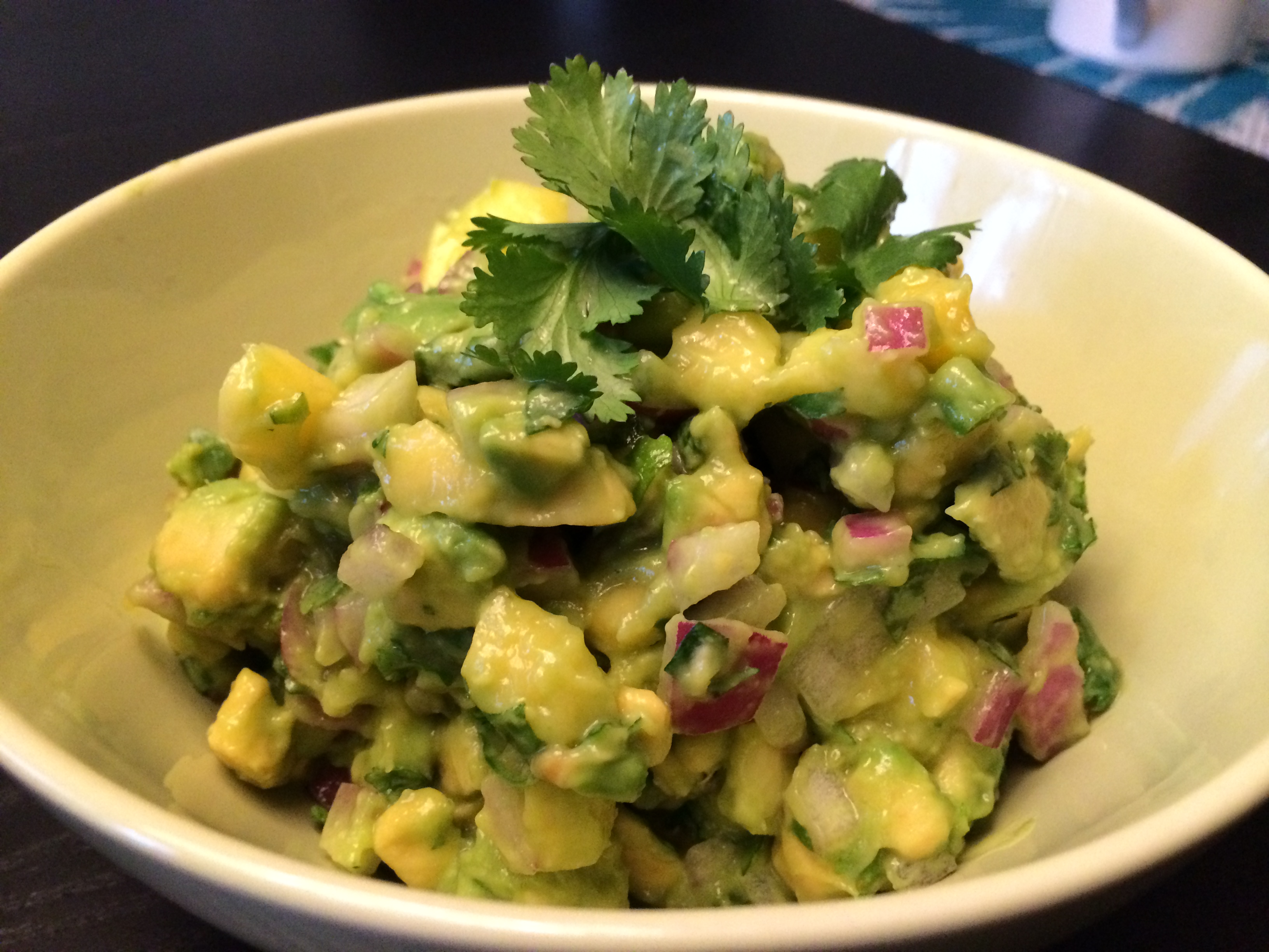 1. Dice avocado, cilantro, pepper, mango, and onion.